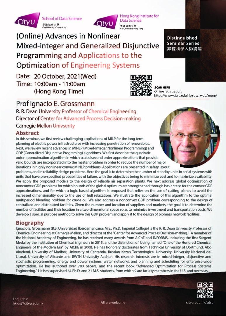 Ignacio E. Grossmann (B.S. Universidad Iberoamericana; M.S., Ph.D. Imperial College) is the R. R. Dean University Professor of Chemical Engineering at Carnegie Mellon, and director of the "Center for Advanced Process Decision-making." A member of the National Academy of Engineering, he has received many awards from AIChE and  NFORMS, including the first Sargent Medal by the Institution of Chemical Engineers in 2015, and the distinction of  being named “One of the Hundred Chemical Engineers of the Modern Era” by AIChE in 2008. He has honorary doctorates from Technical University of Dortmund, Abo Akademi, University of Maribor, University of Cantabria, Russian Kazan Technological University, University Nacional del Litoral, University of Alicante and RWTH University Aachen. His research interests are in mixed-integer, disjunctive and stochastic programming, energy and power systems, water networks, and planning and scheduling for enterprise-wide optimization. He has authored over 700 papers, and the recent book “Advanced Optimization for Process Systems Engineering.” He has supervised 64 Ph.D. and 21 M.S. students, from which 9 are faculty members in the U.S. and overseas.