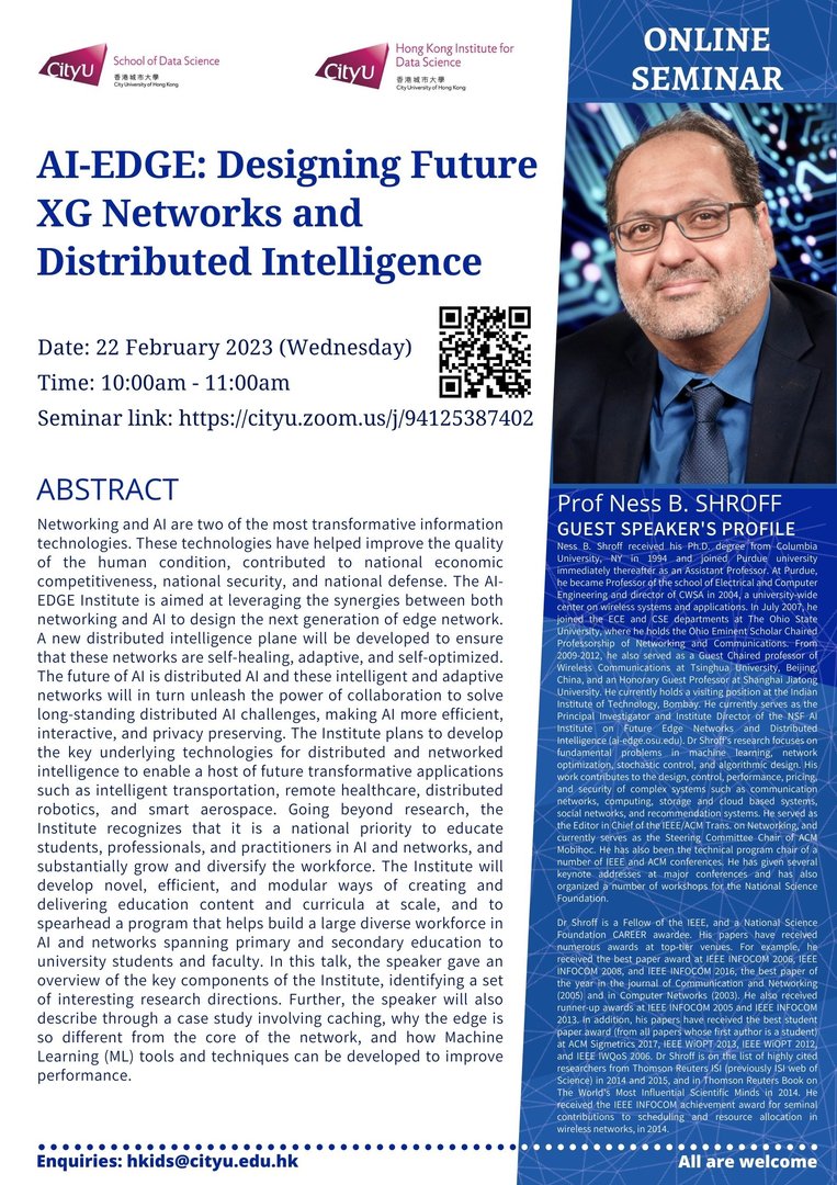 Ness B. Shroff received his Ph.D. degree from Columbia University, NY in 1994 and joined Purdue university immediately thereafter as an Assistant Professor. At Purdue, he became Professor of the school of Electrical and Computer Engineering and director of CWSA in 2004, a university-wide center on wireless systems and applications. In July 2007, he joined the ECE and CSE departments at The Ohio State University, where he holds the Ohio Eminent Scholar Chaired Professorship of Networking and Communications. From 2009-2012, he also served as a Guest Chaired professor of Wireless Communications at Tsinghua University, Beijing, China, and an Honorary Guest Professor at Shanghai Jiatong University. He currently holds a visiting position at the Indian Institute of Technology, Bombay. He currently serves as the Principal Investigator and Institute Director of the NSF AI Institute on Future Edge Networks and Distributed Intelligence (ai-edge.osu.edu).