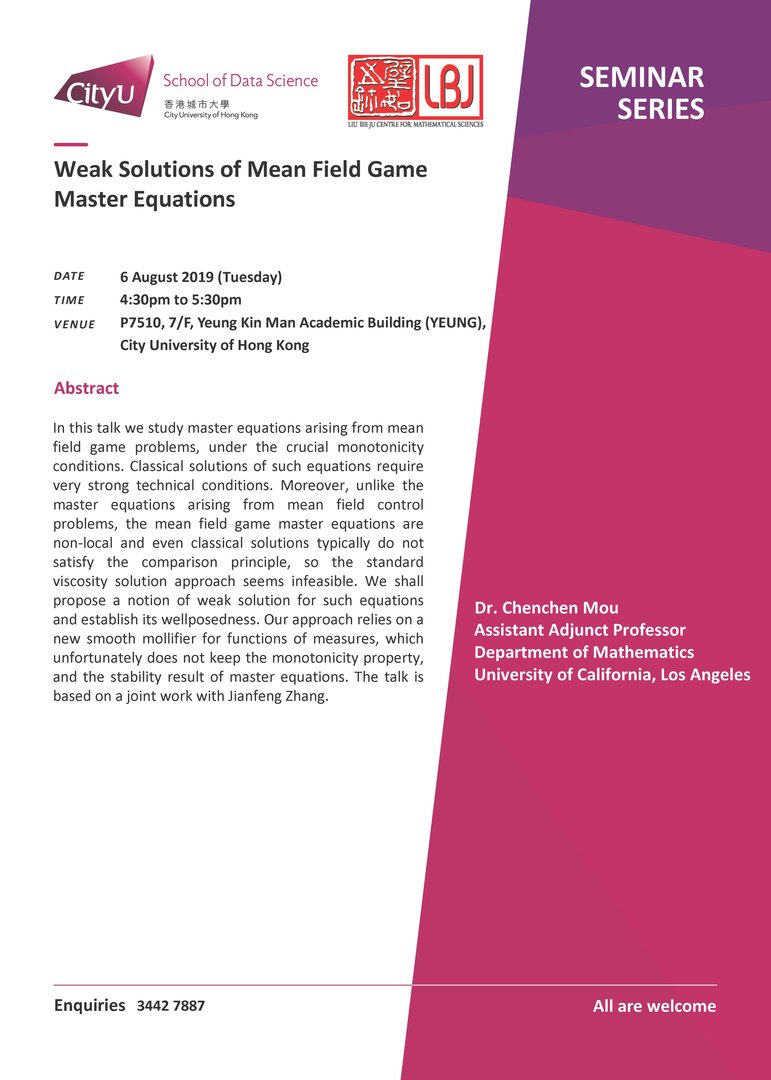 Dr Chenchen Mou, Assistant Adjunct Professor, Department of Mathematics, University of California, Los Angeles